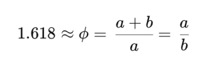 حيث a هو الجزء الأكبر وb الجزء الأصغر. هذه النسبة تعتبر جذابة بصرياً للعين البشرية، ويُعتقد أن الدماغ البشري يفسرها كتوازن مثالي بين الأبعاد.